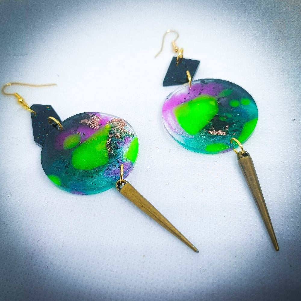 Composition : epoxy, coloured pigments, Gold paper, chirurgical steel.